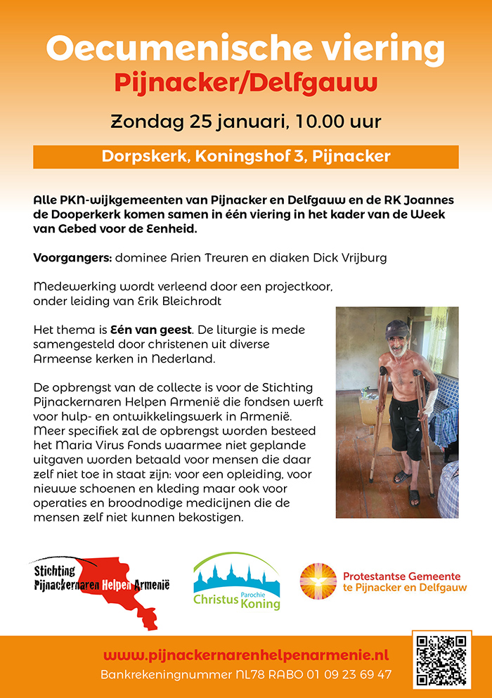 Wilt u de Stichting Pijnackernaren Helpen Armenië steunen, maak dan gebruik van rekeningnummer NL 78 RABO 01 09 23 69 47 ten name van Stichting Pijnackernaren Helpen Armenië. Voor verdere informatie kunt u met ons mailen.